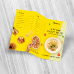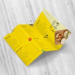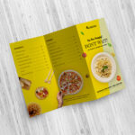 This 3-fold menu design features a sleek, well-organized layout that enhances readability and visual appeal. Each fold is thoughtfully structured to highlight key sections such as starters, mains, beverages, and specials. High-quality images and bold headings help guide the customer’s eye naturally through the menu, while consistent typography and balanced spacing create a polished, modern look. The use of contrasting colors ensures important items stand out without overwhelming the design. Practical and stylish, this tri-fold format is ideal for restaurants, cafés, food trucks, and catering services, offering ample space for detailed listings while remaining compact and easy to handle.